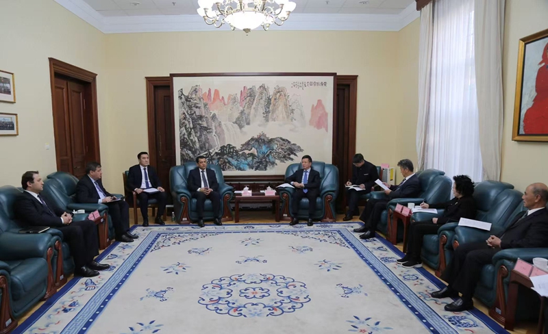 2025年11月12日下午,国务院参事室主任邹晓东在国务院参事室会见乌兹别克斯坦驻华大使阿尔济耶夫。